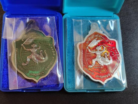 เหรียญมังกรคู่ จักรพรรดิ์ ๙๙ หลวงพ่อพัฒน์ วัดห้วยด้วน ปี63 ยก2องค์ เนื้อไทยเทเนี่ยมลงยาและเนื้อเงินยวงลงยา |