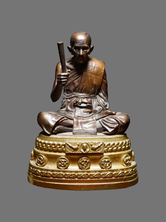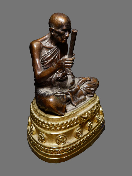 หลวงพ่อรวย วัดตะโก พระบูชา เนื้อโลหะรมดำ ฐานทอง รุ่นรวยเหลือล้น no.453 จำนวนการสร้าง 1,000องค์ (มูลนิธิหลวงพ่อรวยจัดสร้าง) สวยมาก ใต้ฐานฝังหัวเลสเนื้อทองทิพย์