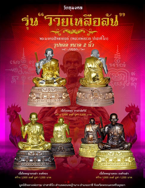 หลวงพ่อรวย วัดตะโก พระบูชา เนื้อโลหะรมดำ ฐานทอง รุ่นรวยเหลือล้น no.453 จำนวนการสร้าง 1,000องค์ (มูลนิธิหลวงพ่อรวยจัดสร้าง) ออกจากวัด บูชา 1,200บาท