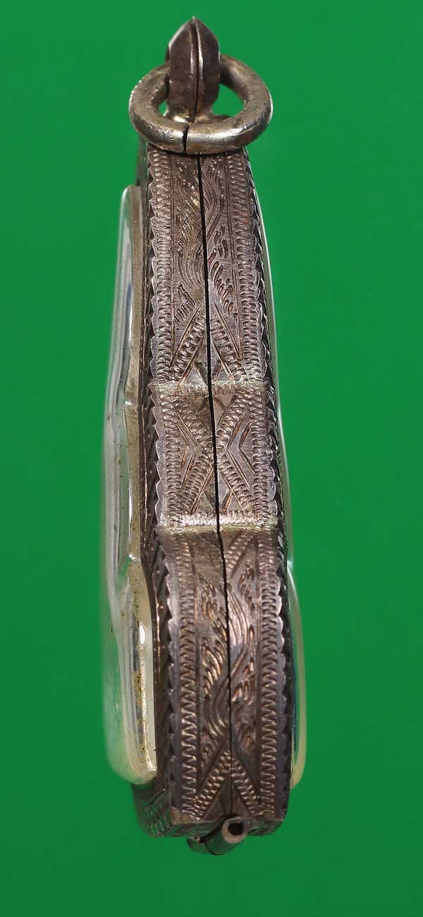 วัดใจ...ตลับเงินเก่า ใส่พระพิมพ์ท่ากระดาน (เปิดหน้าหลัง) เปอร์เซนต์สูง งานเก่า