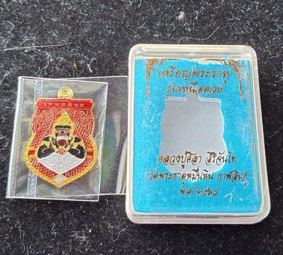 เหรียญพระราหูอมจันทร์ หลวงปู่มหาศิลา เมตตาอธิษฐานจิต รุ่นเหนือดวง เนื้อทองเหลืองลงยา No.146 |