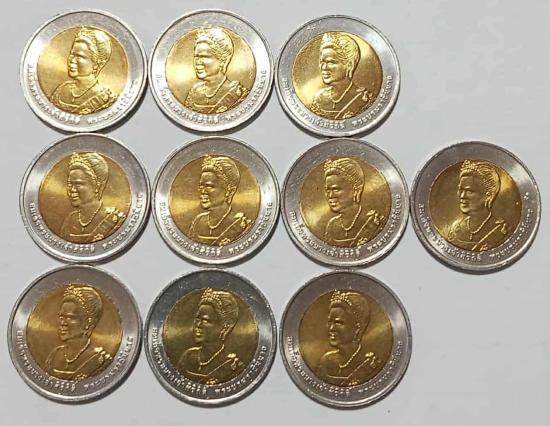 เหรียญ 10 บาท สองสี ที่ระลึกสมเด็จพระนางเจ้าสิริกิติ์พระบรมราชินีนาถพระพันปีหลวง เฉลิมพระชนมพรรษา 75 พรรษา 12 สิงหาคม 2550 เหรียญไม่ผ่านใช้งานแกะถุง จำนวน 10 เหรียญ สวยๆ ครับ #1# |