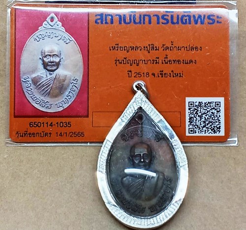 เหรียญปัญญาบารมี หลวงปู่สิม เนื้อทองแดง ปี2518 วัดถ้ำผาปล่อง จ.เชียงใหม่ พร้อมบัตรรับรองและเลี่ยมกรอบเงินแท้ 92.5% ขึ้น งานมือ กรอบหนา สวยๆ.. |