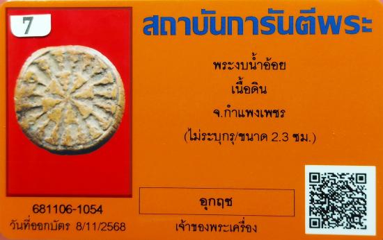 วัดใจ พระกำแพงงบน้ำอ้อย เนื้อดิน จ.กำแพงเพชร (ขนาด 2.3 ซม.) พร้อมบัตรรับรองจากจีพระ