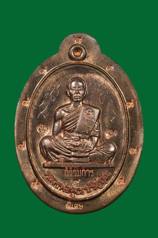 วัดใจ เหรียญหลวงพ่อคูณ พิมพ์สร้างบารมี ย้อนยุค รุ่นพุทธคูณสยาม (มหาลาภ) ออกวัด ใหม่อัมพวัน ปี 2554 เนื้อทองแดงผิวไฟ หลังเรียบมีรอยจาร ชุดกรรมการ ไม่ตัดปีก สภาพสวย หมายเลข ๔