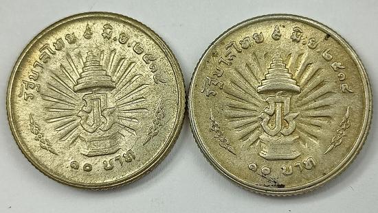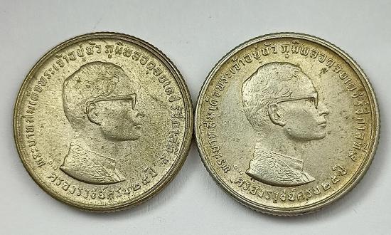 เหรียญกษาปณ์ 10 บาท "ที่ระลึกครองราชย์ครบ 25 ปี" ในหลวงรัชกาลที่9 เนื้อเงิน 2 เหรียญ (B-2)(เหรียญ2เหรียญ หนักรวมประมาณ 10 กรัม)