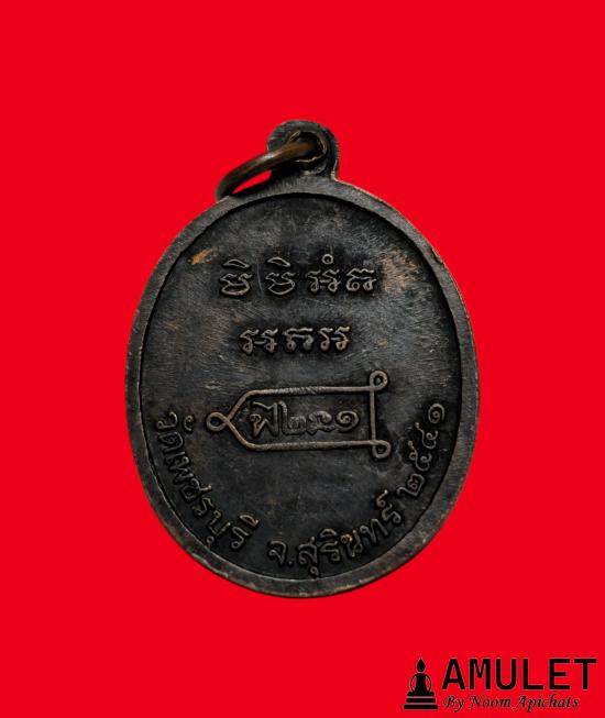 (เคาะเดียวแดง) เหรียญรุ่นแรก หลวงปู่หงษ์ พรหมปัญโญ วัดเพชรบุรี จ.สุรินทร์ ปี2541 เนื้อทองแดงรมดำ หลังยันต์จตุธาตุ |