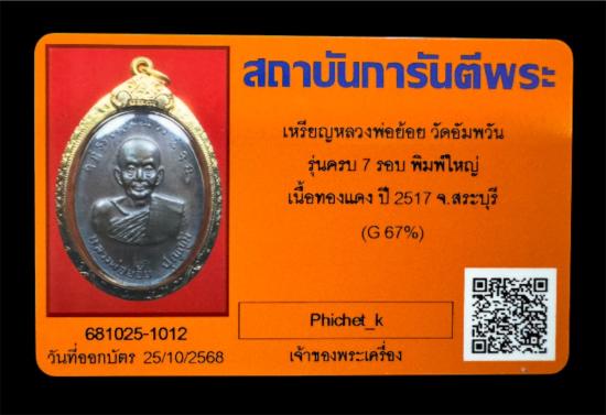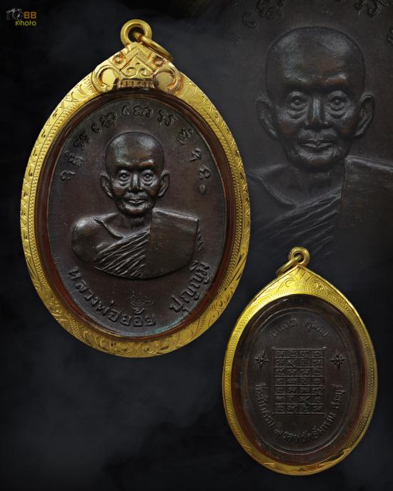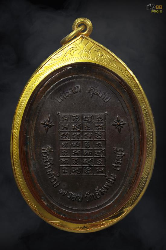 เหรียญหลวงพ่อย้อย วัดอัมพวัน พร้อมเลี่ยมทอง รุ่นให้ลาภคุ้มภัย พิมพ์ใหญ่ เนื้อทองแดง ปี2519 จ.สระบุรี