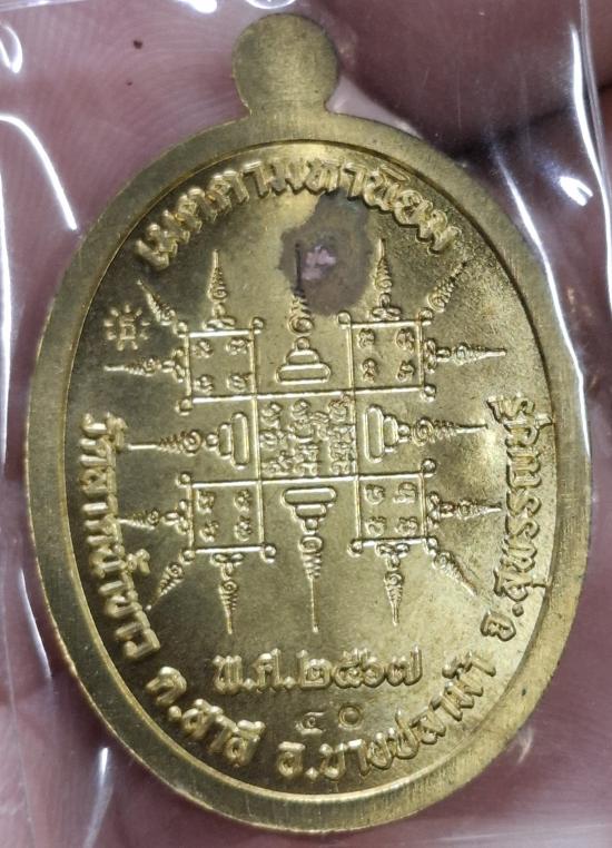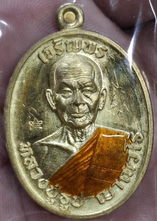 เหรียญ"เจริญพรบน"หลวงปู่ธูป ญาณวโร วัดลาดน้ำขาว จ.สุพรรณบุรี เนื้อทองทิพย์ลงยาจีวร มีจารมือ |