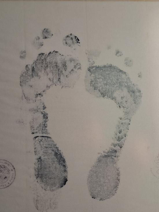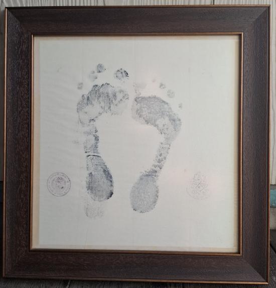 ผ้ายันต์รอยเท้า หลวงพ่อทรง วัดศาลาดิน จ.อ่างทองใส่กรอบไม้ พร้อมบูชา |
