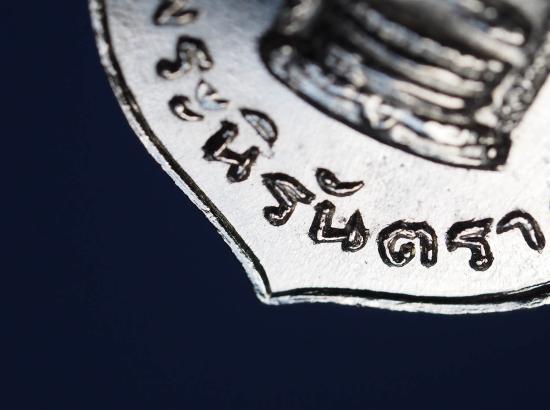 ด้านหลังเหรียญระบุว่า "ที่ระลึกในการเสด็จ วางศิลาฤกษ์ อาคารเรียนศูนย์การศึกษาคณะสงฆ์ปราจีนบุรี"สุ จุิ ปุ ริ อะ สัง วิ สุ โล ปุ สะ พุ พะ