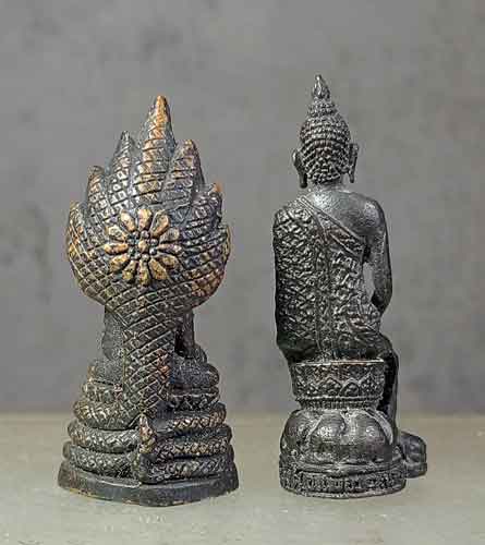 รูปหล่อนาคปรก ใต้ฐาน รุ่น๑ + พระบัวเข็ม ด้านหลัง ปราบมาร ไม่ทราบที่ |