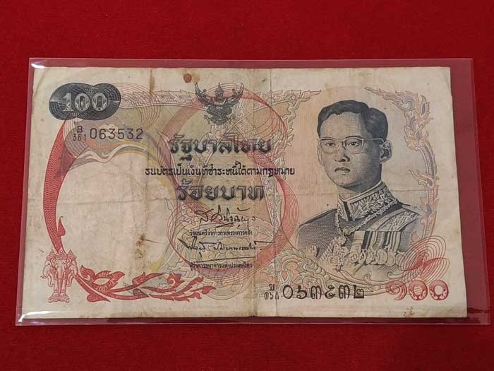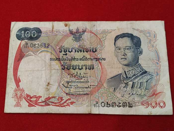 วัดใจ 100 เดียวแดง ++ ธนบัตร 100 บาท ร.9 หลังเรือสุพรรณหงส์ สภาพผ่านใช้งาน