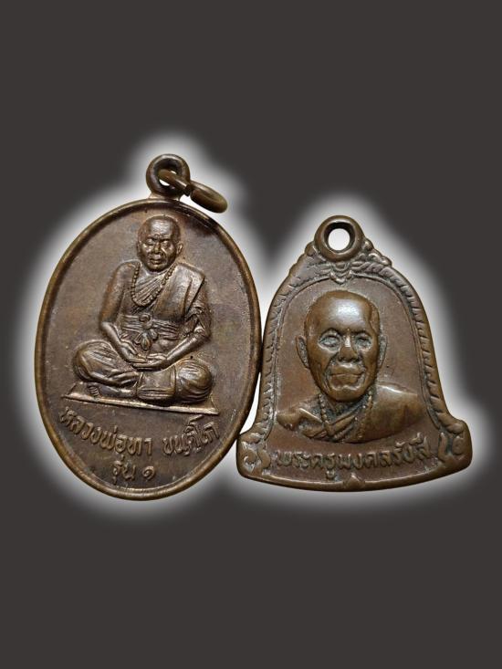 A4195.ยกคู่ 2 เหรียญ!! พระครูมงคลรังสี วัดศรีมงคล ปี 18 + เหรียญหลวงพ่อทา วัดป่าบง เคาะเดียวเเดง |