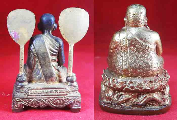 รายละเอียด รูปหล่อบูชา หลวงพ่อเงิน วัดบางคลาน ขนาดหน้าตัก 3 ซ.ม. สูง 6 ซ.ม. เนื้อโลหะ + พระสังกัจจายน์ ฐานบัวหงายบนมังกรคู่ วัดหนองหม้อ
