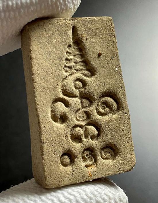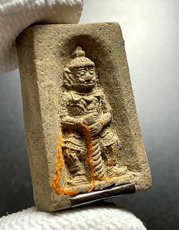 พระผงยักษ์ส้มป่อย กดพิมพ์โบราณ ครูบาจันทร์ โชติโก ตะกรุดเงิน No.75