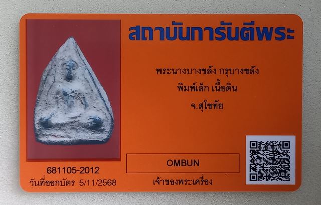 รายละเอียด +++ (..วัดใจ..) ...พระนางบางขลัง พิมพ์เล็ก เนื้อดิน กรุบางขลัง จ.สุโขทัย + บัตร G-Pra ++