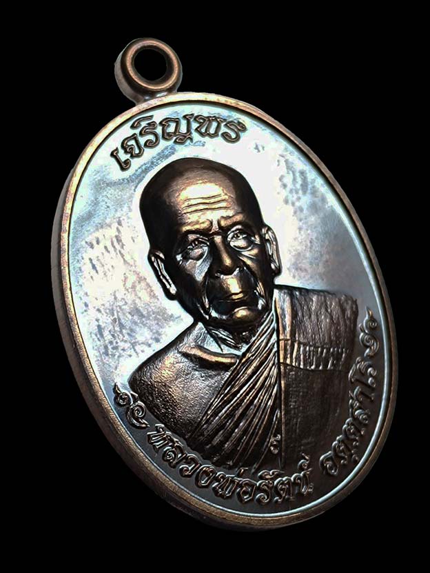 หลวงพ่อรัตน์ วัดป่าหวาย เหรียญเจริญพรบน ครึ่งองค์ เนื้อนวะโลหะ หมายเลข 53 ปี พ.ศ.2562 สวย กล่องเดิม |