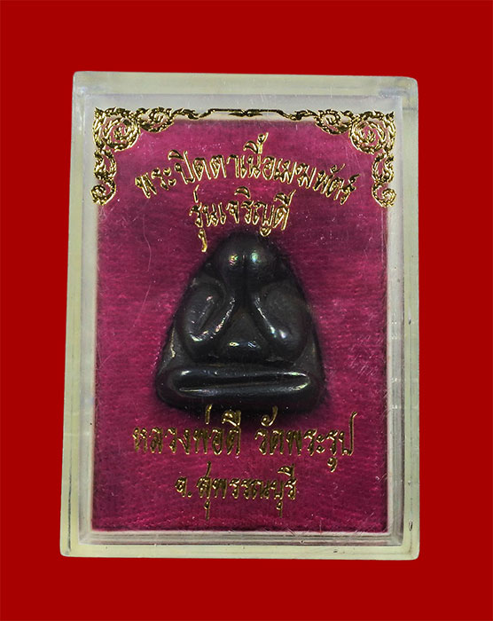 พระปิดตาหลังแบบ รุ่นเจริญดี เนื้อเมฆพัตร หลวงพ่อดี วัดพระรูป ปี 2534 จ.สุพรรณบุรี กล่องเดิม |