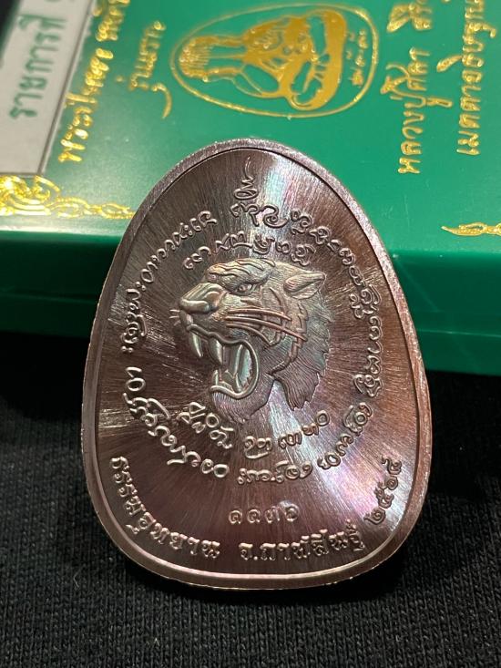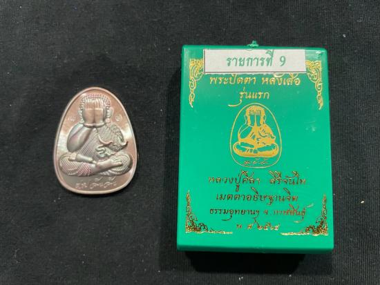 พระปิดตา หลังเสือ รุ่นแรก หลวงปู่ศิลา สิริจันโท เนื้อทองแดงผิวรุ้ง หมายเลข 1136 พร้อมกล่อง