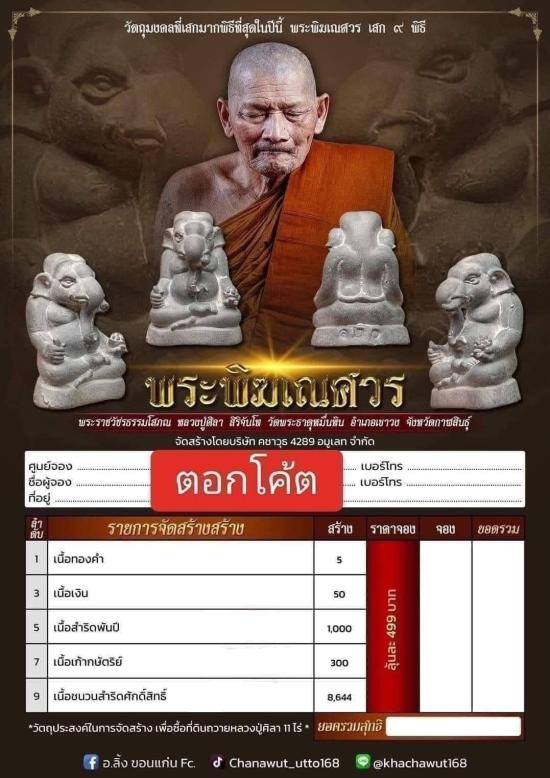 หลวงปู่มหาศิลา รุปหล่อพระพิฆเณศวรสามจักรวาล เสก 9 วาระ เนื้อชนวนสำริดศักดิ์สิทธิ์ รันเลขตอกโค้ด รับพระ10องค์ คละเลข |