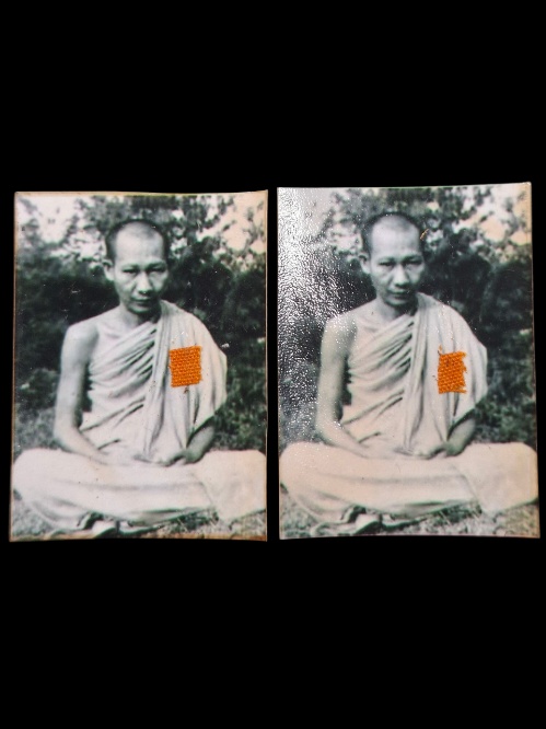 รูปภาพหลวงพ่อเกษม เขมโก หลังปั้มหมึก ติดจีวร ปี2518 ขนาด 1 นิ้ว 2 บาน #2 |
