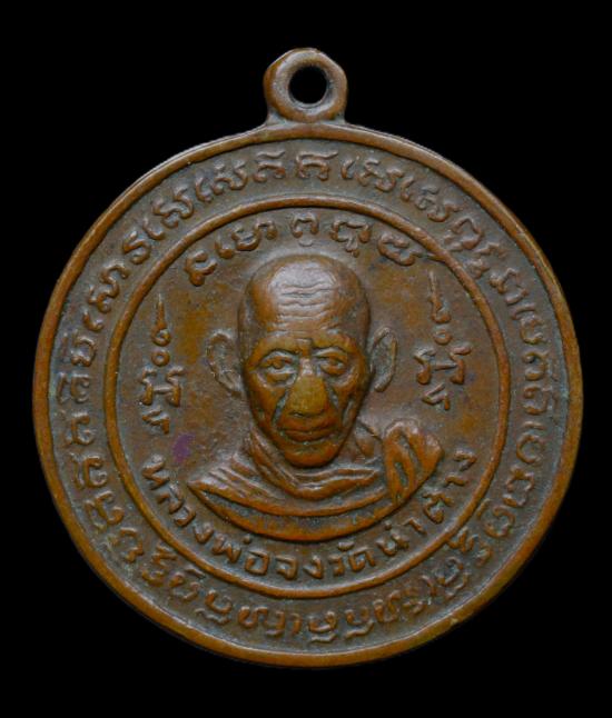 เหรียญกลม หลวงพ่อจง วัดหน้าต่างนอก พิมพ์หลังสิงห์ (๓ ใหญ่) เนื้อทองแดง ปี 2502