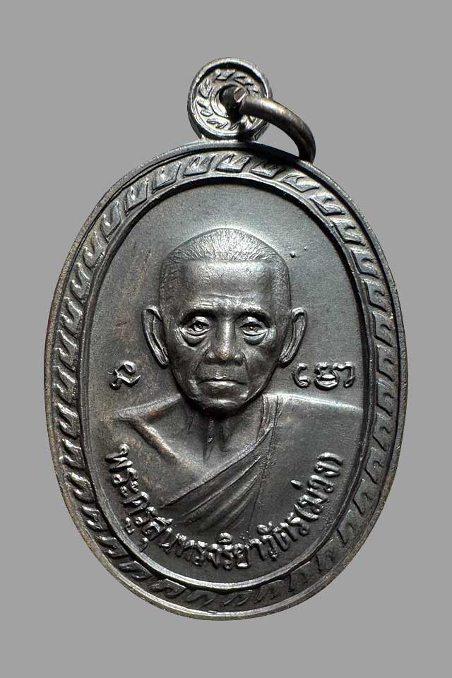 หลวงปู่ม่วง วัดยางงาม จ.ราชบุรี ปี๒๕๔๒ อายุ๘๙ปี เนื้อทองแดงรมดำ |