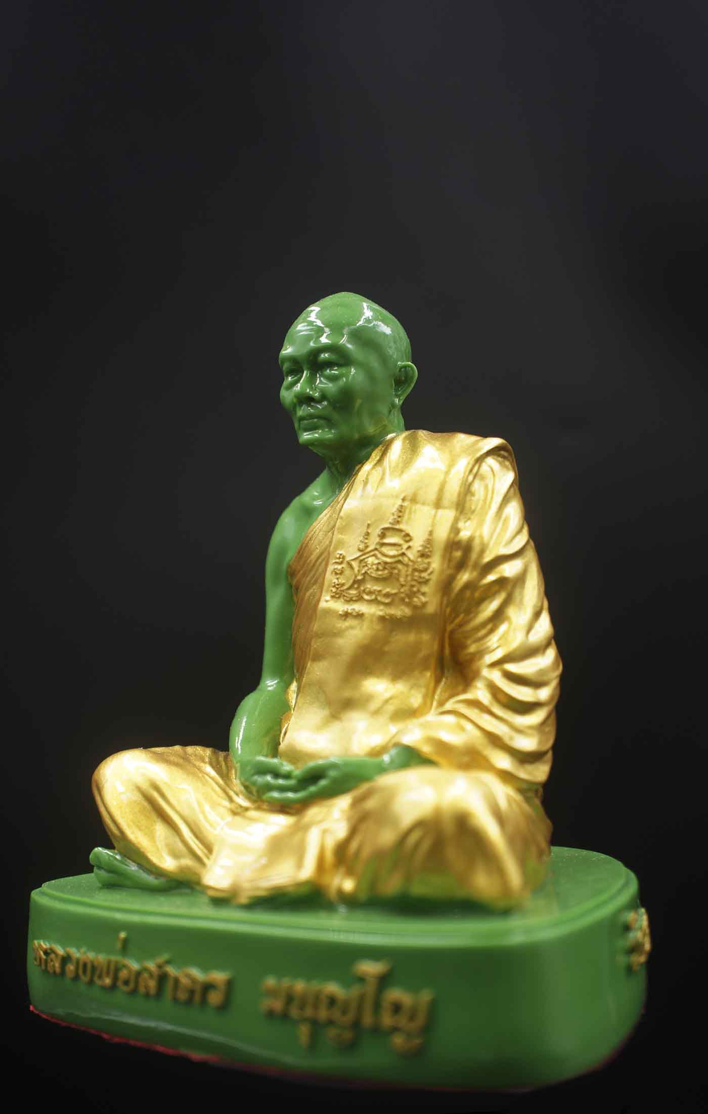 พระบูชา รูปหล่อ หลวงพ่อสาคร ( ย้อนยุค ) เนื้อเรซิ่นเขียว จีวรทอง ปี 2566 ขนาดหน้าตัก 3 นิ้ว สร้าง 1499 องค์ หมายเลข 3 หลัก **740** ( หลวงพี่ภุชงค์ ศฺิษย์หลวงพ่อสาคร ปลุกเสก วัดหนองกรับ ) ขนาดความสูง 4.8 นิ้ว กว้างจากฐาน 4 นิ้ว ใต้ฐาน ฝังหลอดมวลสาร แผ่นโค๊ตเงิน ตอกศาลา* |