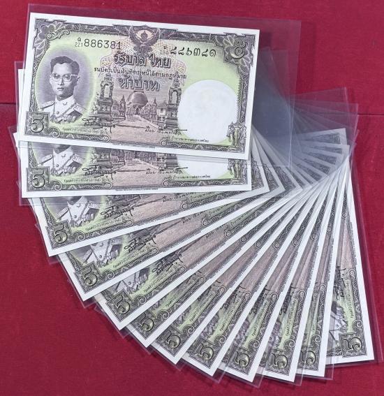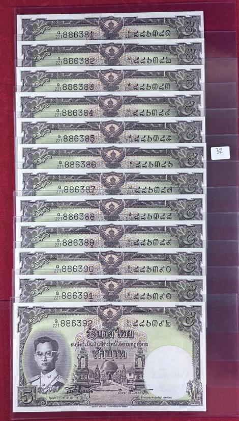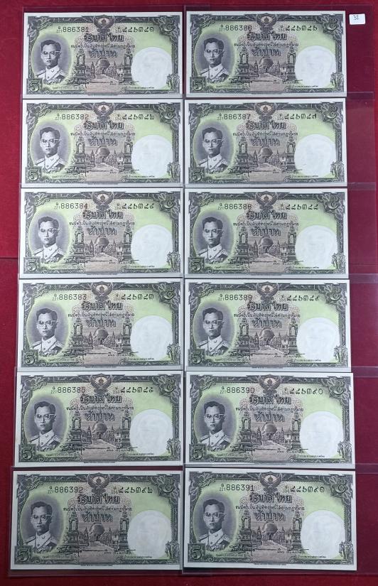 ธนบัตร 5 บาท แบบ 9 โทมัส จำนวน 12 ใบ สภาพใหม่เรียงเบอร์ สวยตามรูป