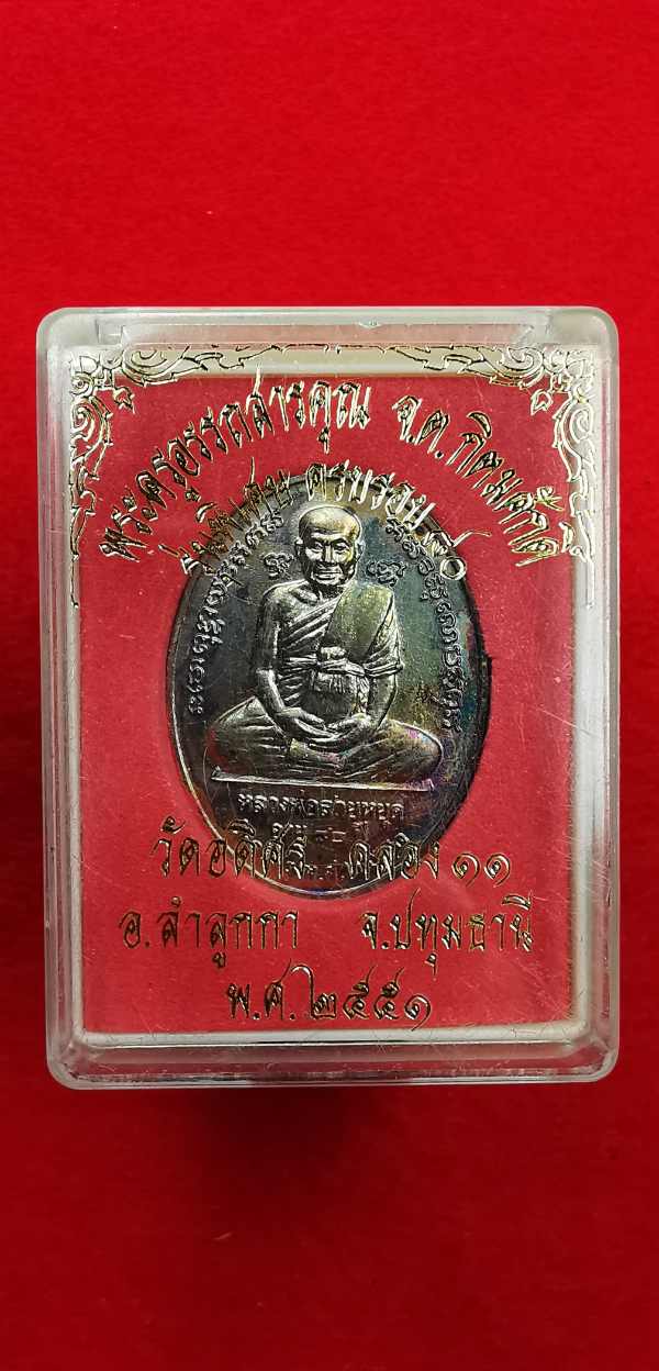 หลวงพ่อสายหยุด วัดอดิศร อ.ลำลูกกา จ.ปทุมธานี รุ่นอายุ 80 ปี พ.ศ. 2551 เนื้อเงินพร้อมกล่องเดิม