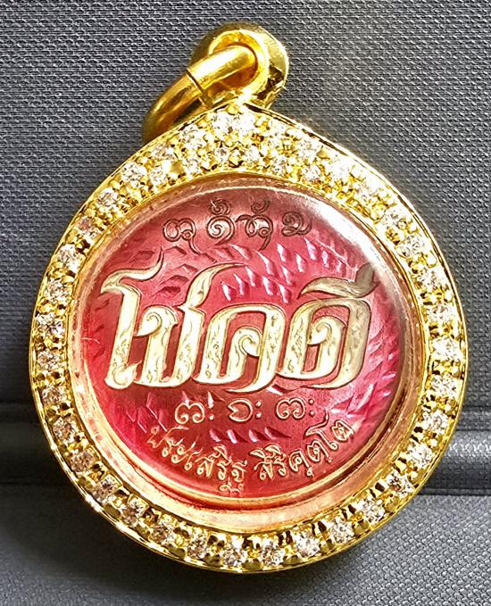 เนื้อทองไหล ลงยาชมพู จำนวนสร้างเพียง 31 องค์เท่านั้น(ไม่ได้มีทุกแพ็ค)