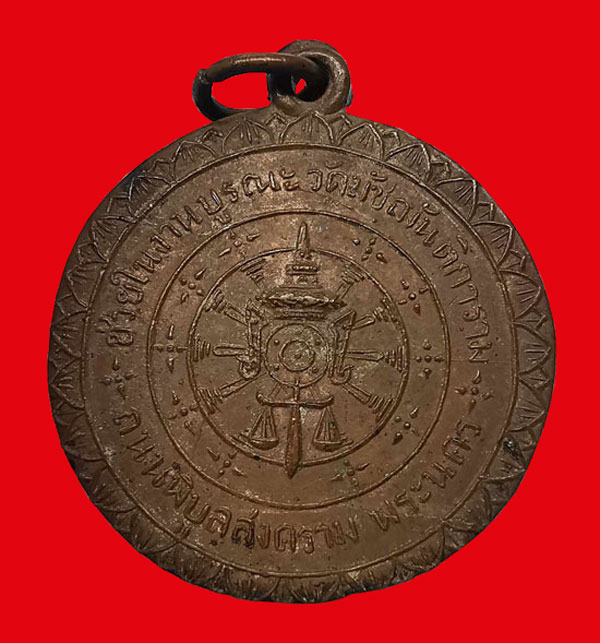 เหรียญวัดมัชฌันติการาม ช่วยในงานบูรณะ ถนนพิบูลสงคราม พระนคร เนื้อทองแดง ห่วงเดดิม ปี2490 จ.กรุงเทพฯ |