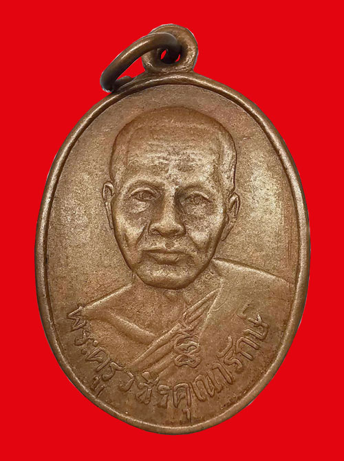 เหรียญพระครูวชิรคุณารักษ์ วัดไทรย้อย เนื้อทองแดง ห่วงเดิม ปี2504 จ.เพชรบุรี + บัตรG-pra |