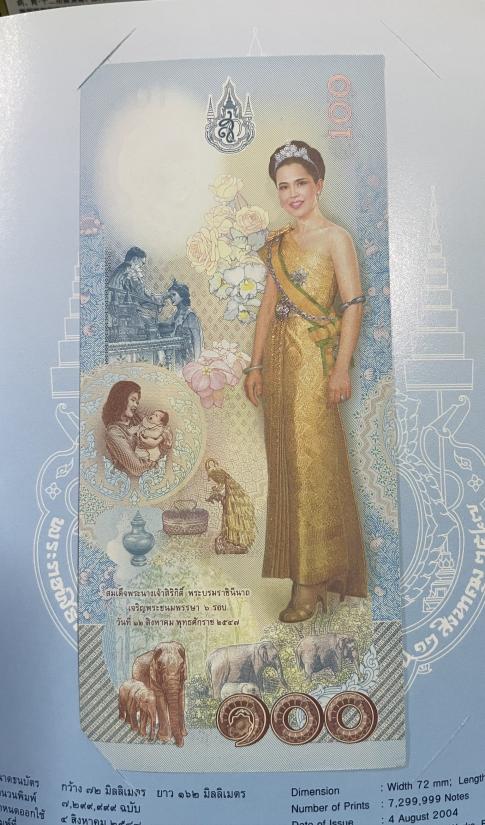 ธนบัตรที่ระลึกเฉลิมพระเกียรติพระราชชนนีพันปีหลวงพระชนมพรรษา 6 รอบ ชนิดราคา 100 บาท สภาพ UNC |