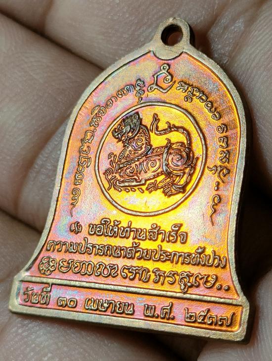 เหรียญระฆัง หลังสิงห์ รุ่นบำบัดทุกข์บำรุงสุข หลวงพ่อเกษม เขมโก จ.ลำปาง ปี 2537 เนื้อทองแดง |