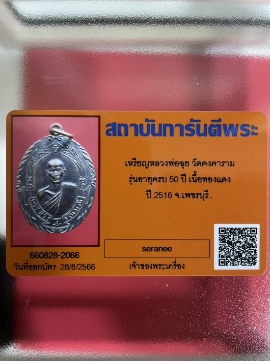 เหรียญหลวงพ่อฉุย วัดคงคาราม รุ่นอายุครบ 50 ปี เนื้อทองแดง 2516 จ.เพชรบุรี |