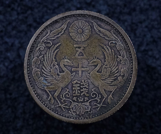 วัดใจ ... เหรียญกษาปณ์ญี่ปุ่น 50 sen ยุคไทโช(Taisho jidai - รัชสมัยสมเด็จพระจักรพรรดิไทโช ปีที่ 15) - ค.ศ.1926 เนื้อเงิน |