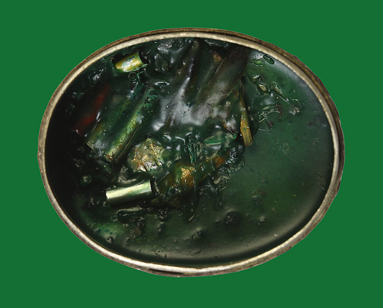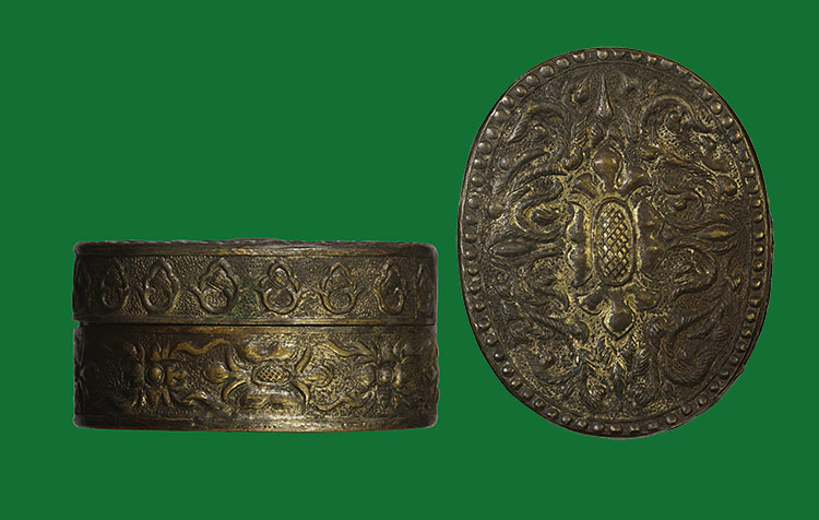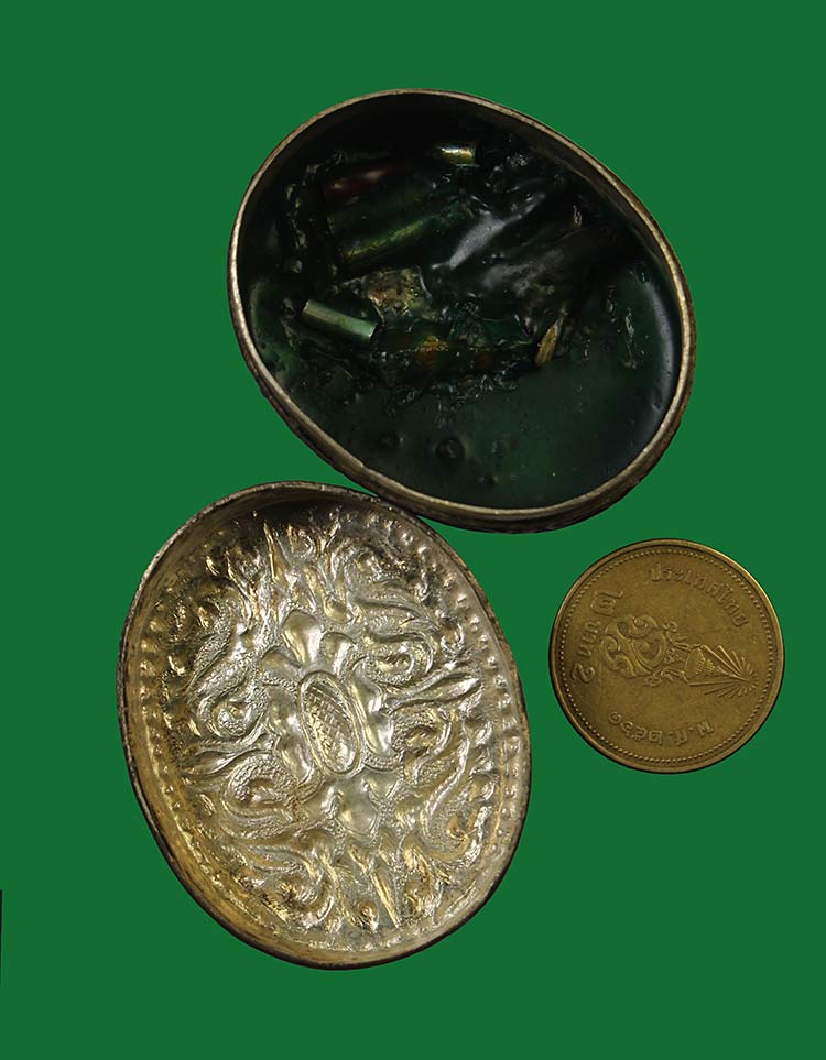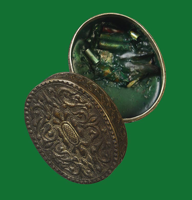 วัดใจ**เครื่องราง ตลับสีผึ้งแกะลายเก่า ไม่ทราบที่....ตามสภาพครับ |