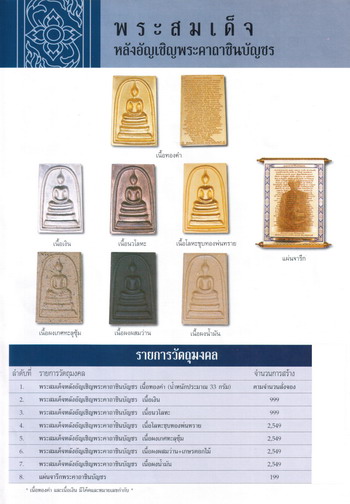 พระสมเด็จรุ่นอัญเชิญพระคาถาชินบัญชร พิมพ์เกศทุละซุ้ม เนื้อกรรมการ เจิมด้วยจีวร หลวงปู่แหวน สภาพสวย สร้างน้อยแค่ 300กว่าองค์ พิธีพุทธาภิเษก ณ พระวิหารวัดมกุฎกษัตริยาราม 17 กรกฏาคม 2548 สภาพสวยมากน่าสะสม รับประกันตามกฏทุกประการ |