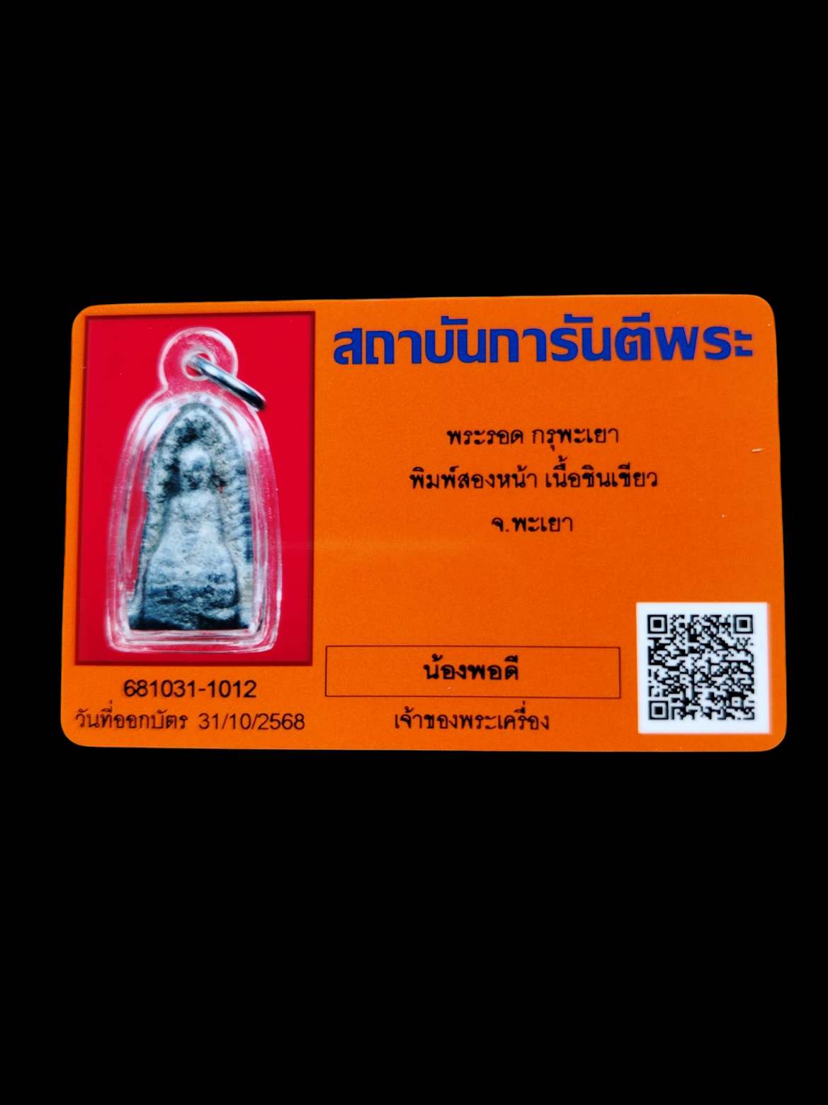 พระรอด กรุ พะเยาพิมพ์สองหน้าเนื้อชินเขียว มาพร้อมบัตรรับรอง
