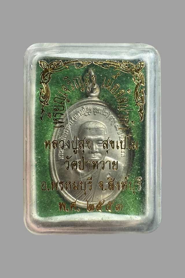 ชื่อพระเครื่อง เหรียญรุ่นเจริญสุข ปี 53 หลวงปู่สุข วัดป่าหวาย จ.สิงห์บุรี เนื้ออัลปาก้า