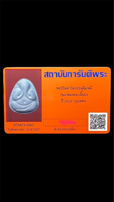 ระปิดตา วัดประดู่ฉิมพลี รุ่นเกศมงคล ปี 2524 เนื้อผงผสมเกศพระประธาน หลวงปู่โต๊ะปลุกเสกมวลสาร มีกล่อง มีบัตรรับรอง |