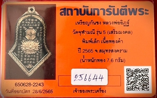 น้ำหนักเหรียญ 7.6 กรัม (พร้อมกล่องเดิมจากวัดฯ)