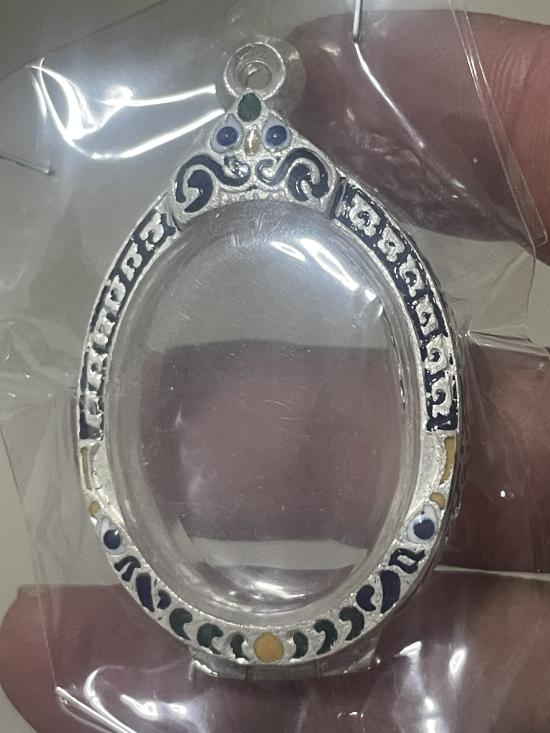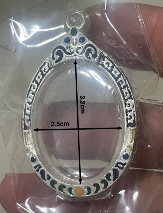 ตลับเงินผสมลงยา ใส่เหรียญรูปไข่ขนาด สูง 3.2cm กว้าง 2.5cm มือ1 พร้อมห่วงกลม |
