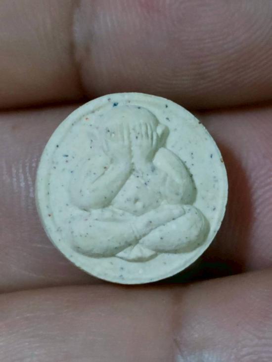 พระปิดตารุ่นแรก พิมพ์จันทร์ลอย หลวงปู่กอง วัดสรมณฑล จ.อยุธยา เนื้อผงพุทธคุณ