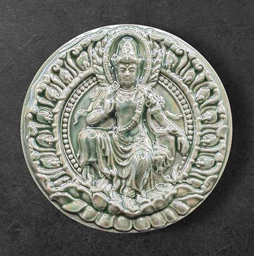 องค์พ่อจตุคาม รามเทพ รุ่น เสวยสุข เนื้อกระเบื้องเคลือบสีเขียวมุก ขนาด 5 ซม. กล่องเดิม |