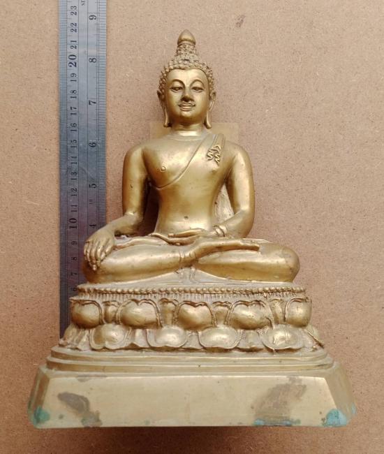 พระบูชา ปางมารวิชัย เนื้อโลหะ ฐานกว้าง 7 นิ้ว สูง 8.5 นิ้ว ตามรูป