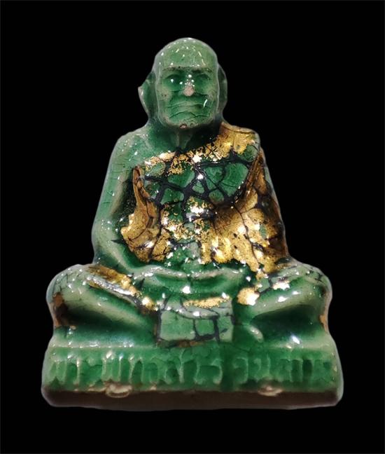 รูปเหมือน หลวงพ่อชื้น วัดญาณเสน จ.พระนครศรีอยุธยา เนื้อผงเคลือบสีเขียว