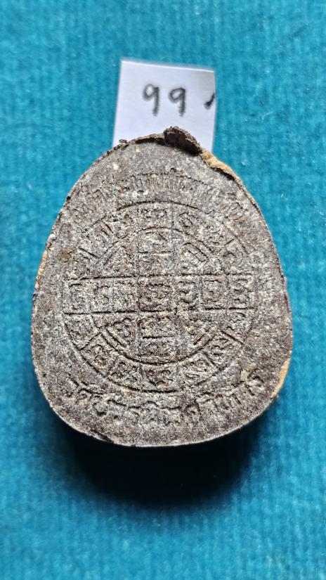 พระปิดตาหลังยันต์ดวงเล็ก เนื้อ2 สี หน้าเกสรหลังใบลาน(มีคล้ายคราบน้ำมนต์) ครับ(99) |